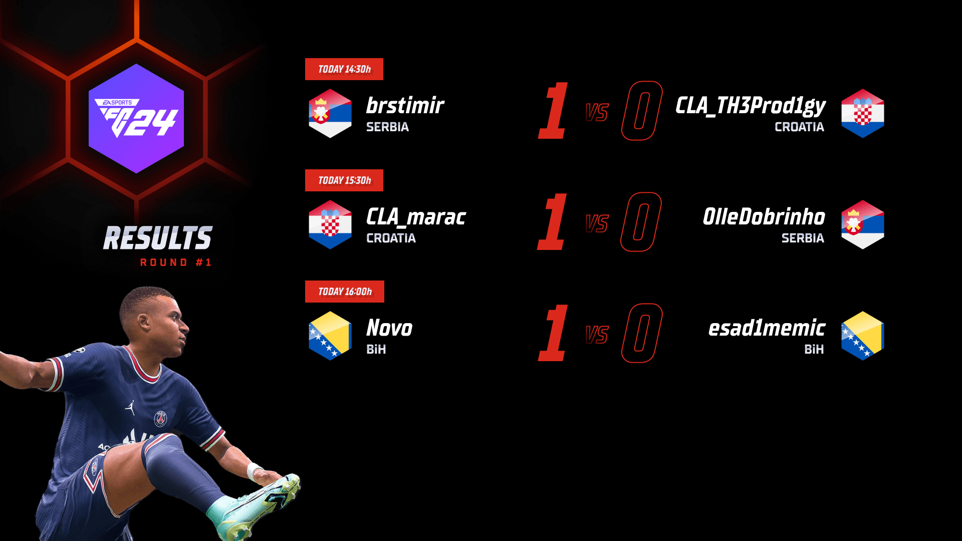 The first round of the group stage in EA FC 24 also didn’t have any upsets. Three out of four scheduled matches were played as one player withdrew from the league. Namely, Haris decided not to participate anymore and his place was taken by NemanjaLS92 a day ago. His match against Cyber Fico will be played subsequently.