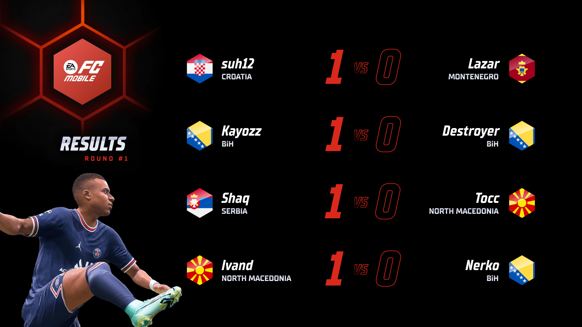 The first round of the group stage in EA FC Mobile finished without any upsets or surprises. In the first match, Suh12 defeated Lazar from Montenegro and justified the role of favorite. The same happened in the second duel of that day, where Kayozz snatched a victory from Destroyer after three matches. Even though he had internet problems, the Bosnian contest went into the hands of a favored Kayozz.