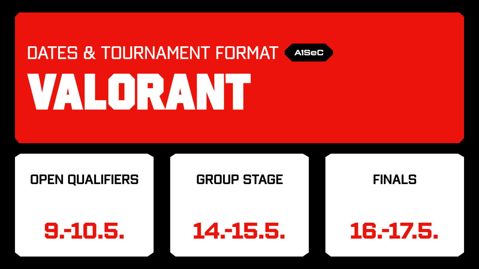 Finally, the tournament concludes with the playoffs (May 16-17). This stage uses a single-elimination BO3 format. In the end, one team will be crowned the first-ever A1SeC VALORANT champion.