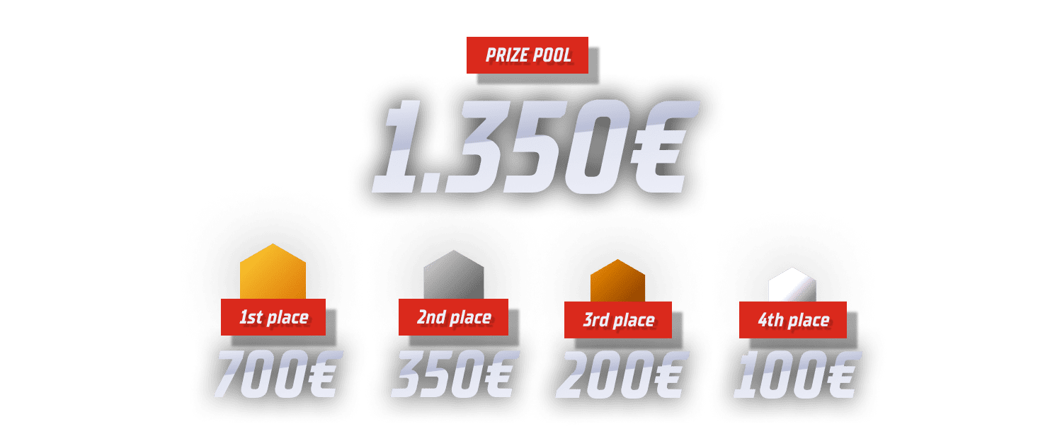 The prize pool for this tournament is 1350 euros. This amount will be awarded to the best four players. First place will receive 700, the vice-champion 350, and third and fourth place will earn 200 and 100 euros, respectively.